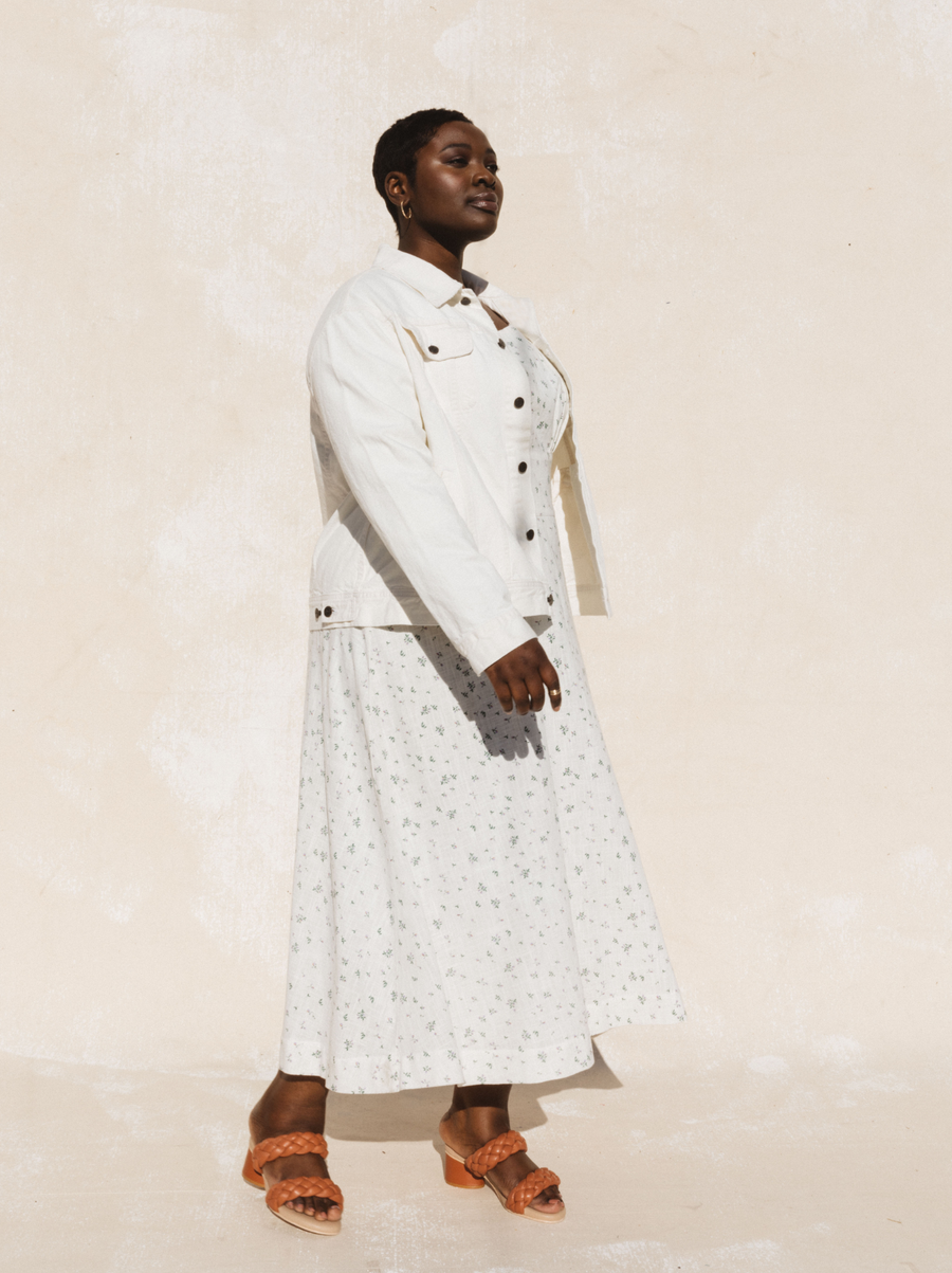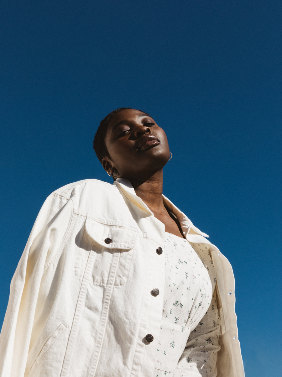 The Classic Bailey Denim Jacket. Inspired by vintage denim and made with our buttery soft, non-stretch denim, the Bailey is slightly oversize with a relaxed fit throughout the body. The length hits at high-hip and is perfect to pair back to dresses and high waisted denim.