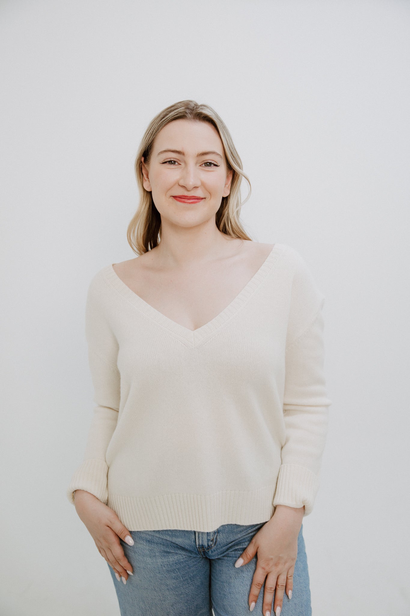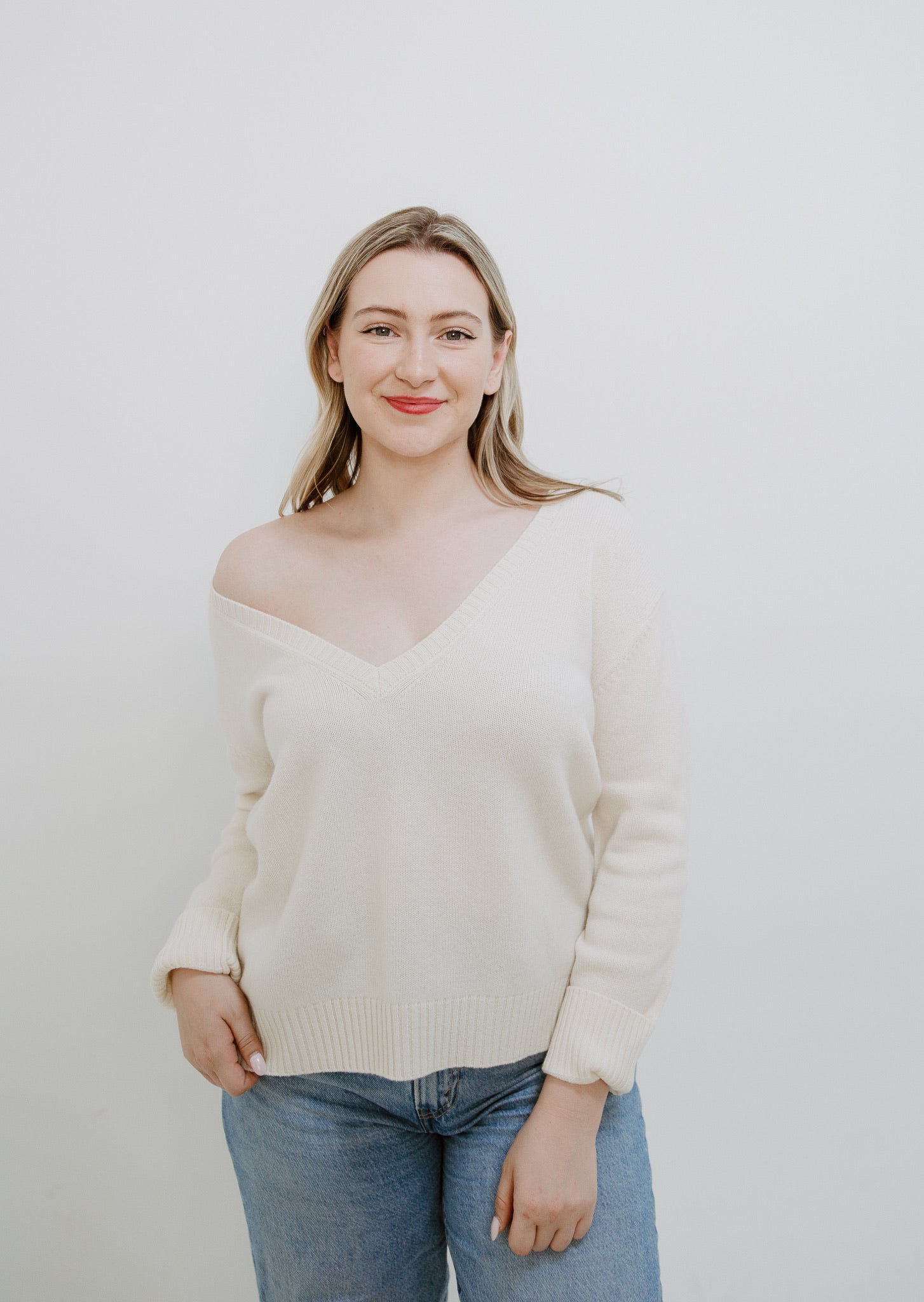 Business in the front, party in the back! A gorgeous, cozy, classic 100% Cashmere sweater that is sure to be a wardrobe staple. Layer it over a tank or a tee for transitioning between seasons.