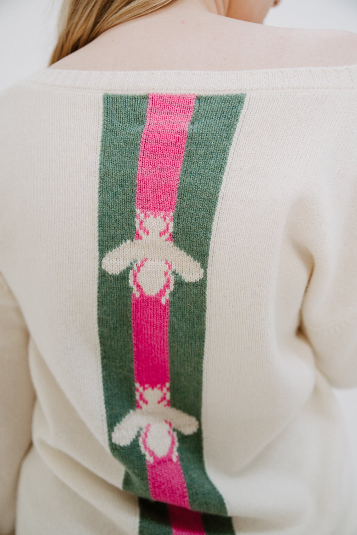 Oversized V-Neck Bee Stripe Cashmere Sweater