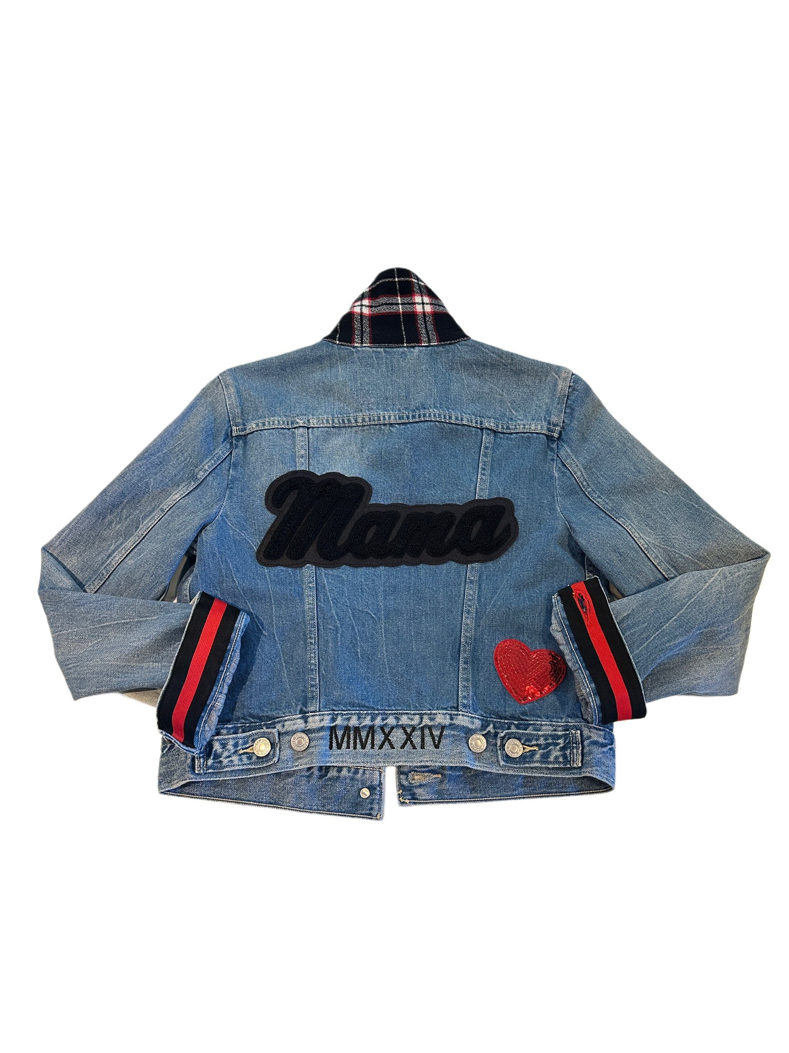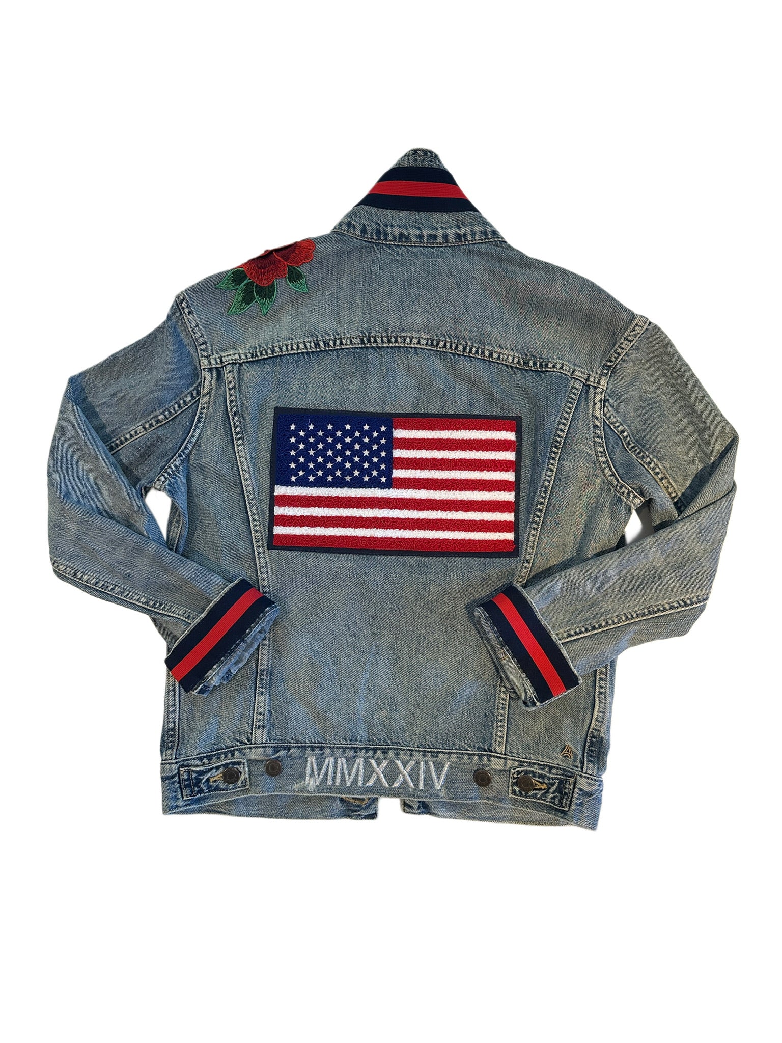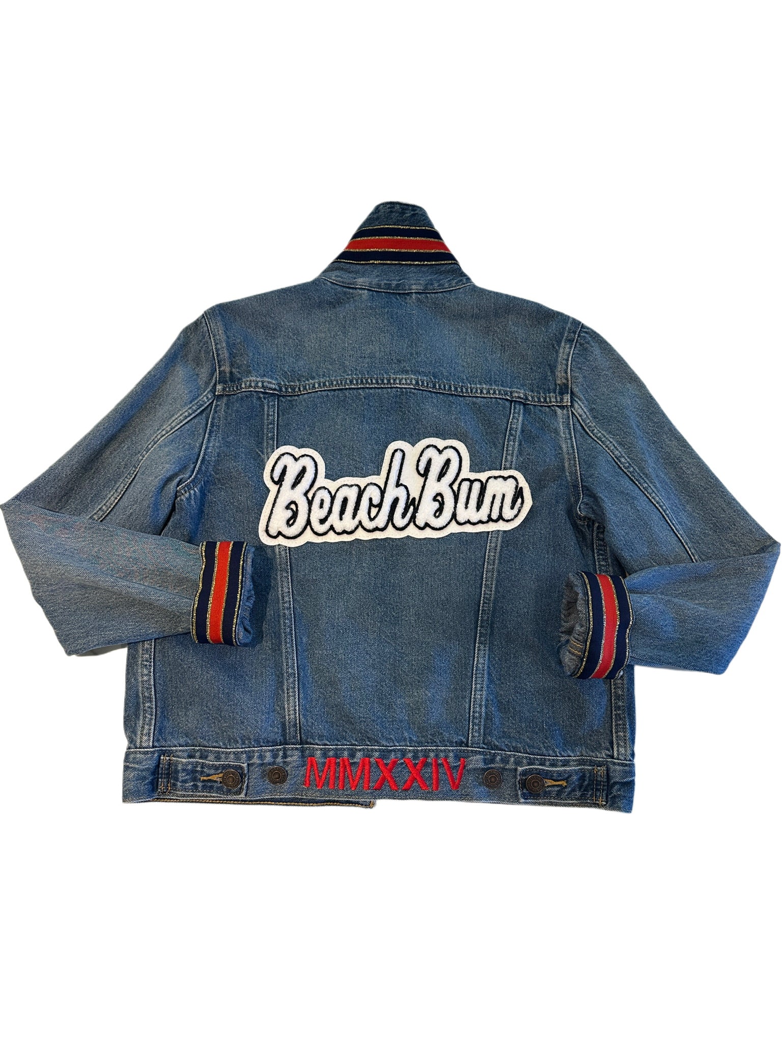 Red with White and Green Stitching