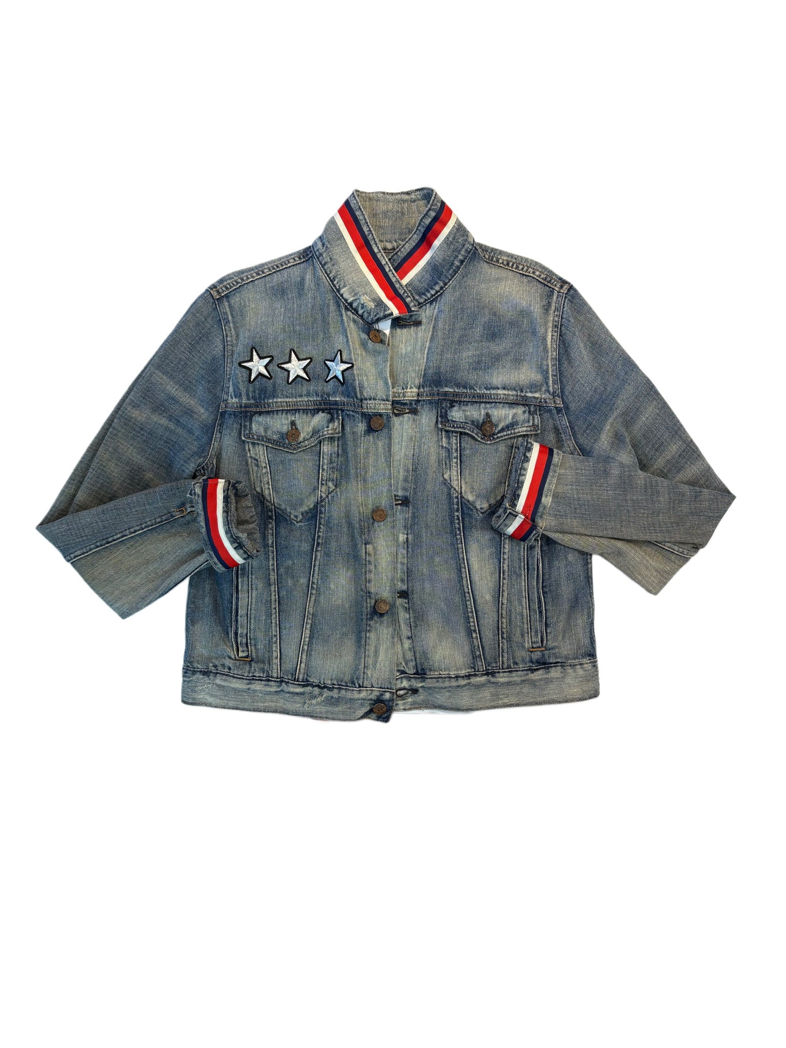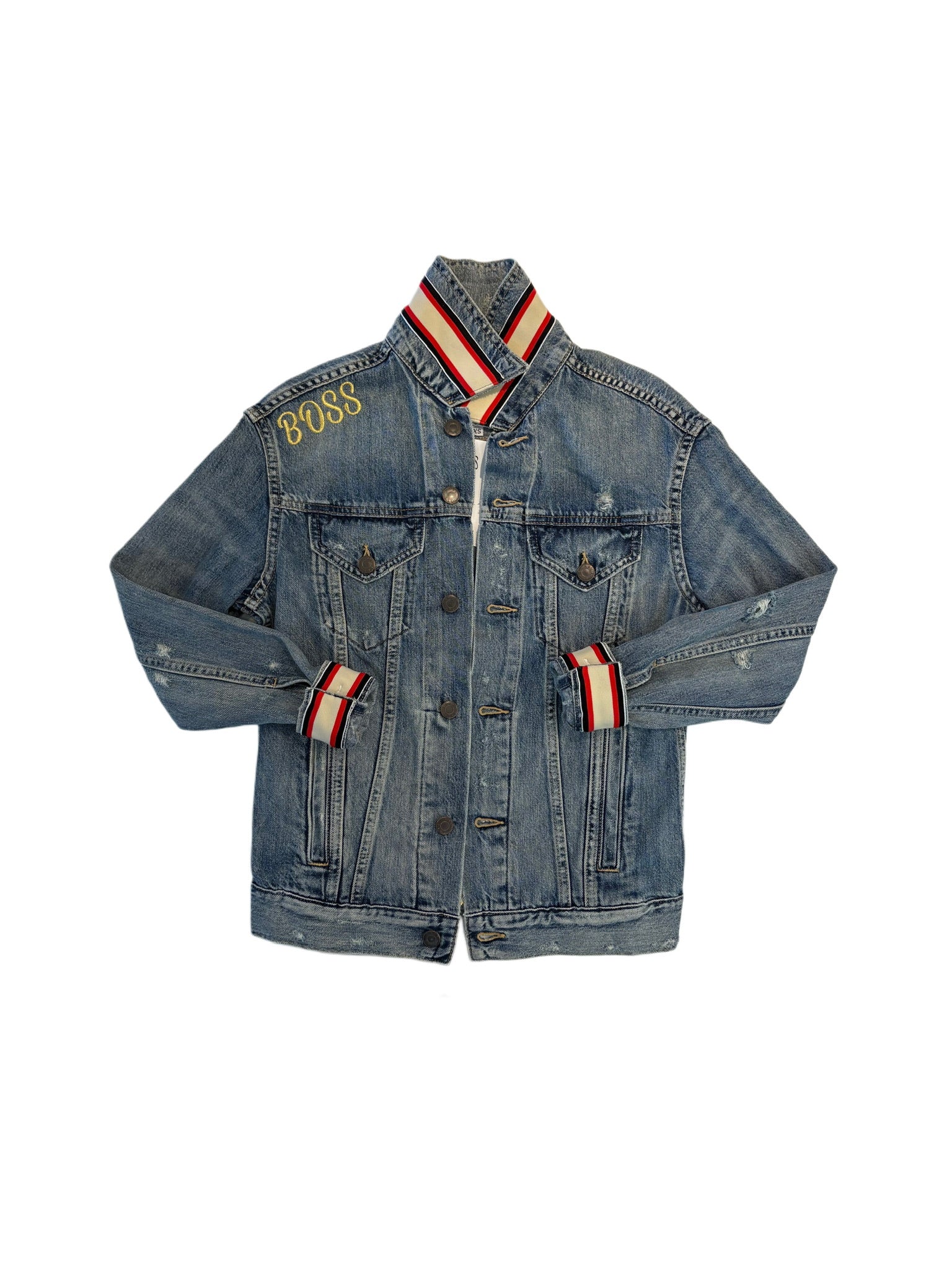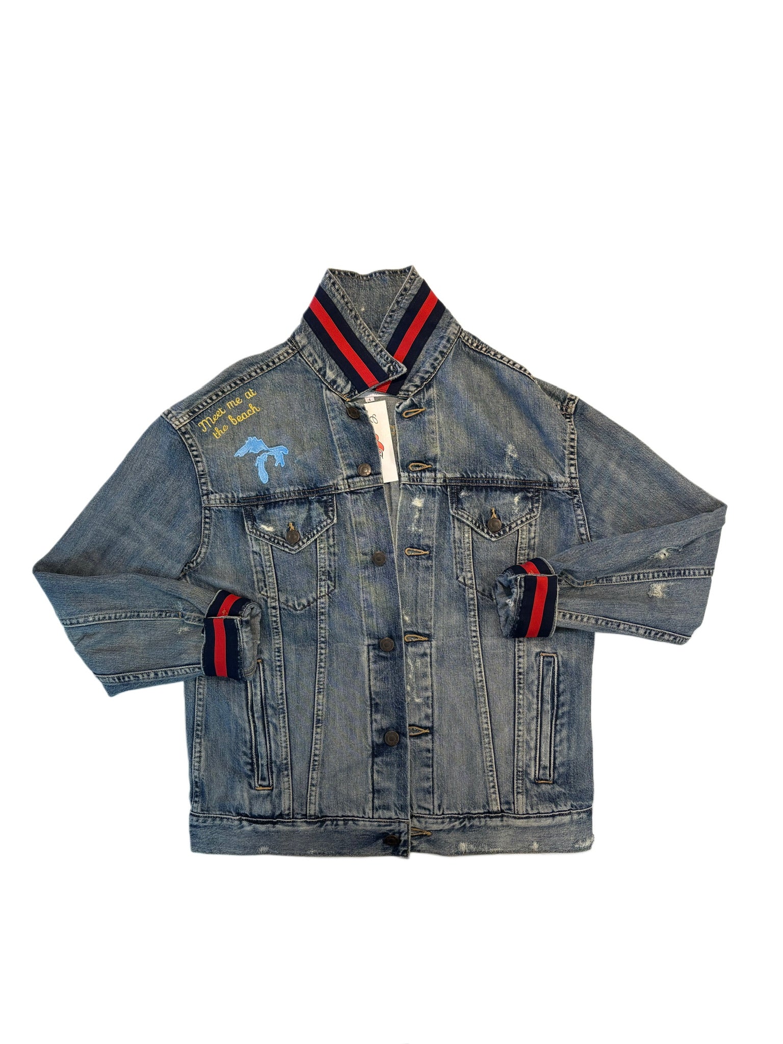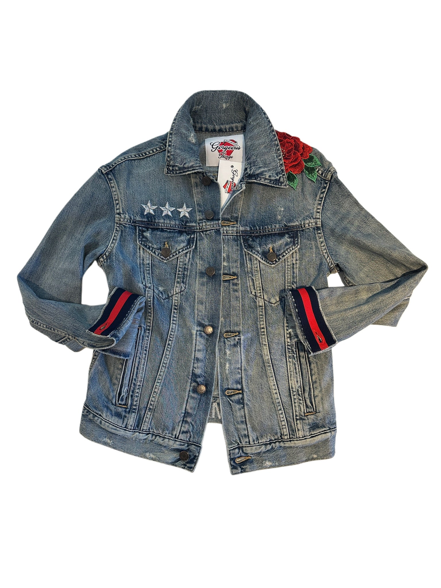 Red with White and Green Stitching