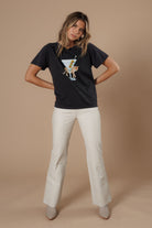 Make a bold statement with the Leopard Martini Wide Boy Tee.This relaxed-fit graphic tee is anything but basic — featuring a playful martini glass print with a fierce leopard detail and a rhinestone-embellished collar that adds a touch of sparkle. Cut in a wide-boy silhouette with soft cotton fabric, it delivers effortless style with a dose of fun. Perfect for pairing with denim or layering under a blazer for a night out.