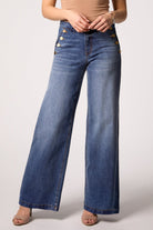 sustainability meets style. Made with fabric derived from recycled water bottles, these jeans feature a flattering mid-rise fit and chic wide-leg silhouette, offering the perfect blend of fashion-forward design and eco-friendly innovation.
