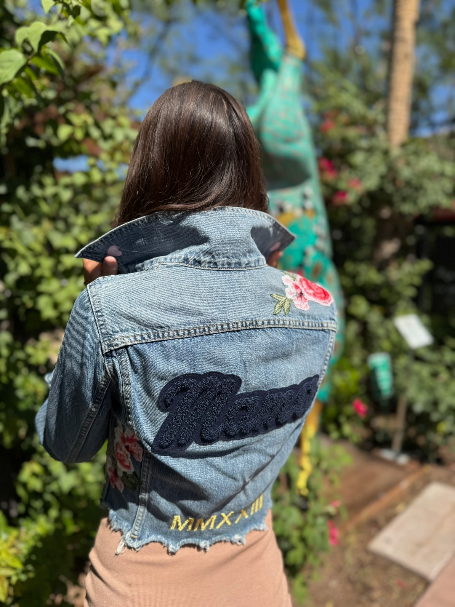From work to play, this versatile denim jacket will make you feel like a chic a chic Mama! Featuring flower patches and a large Mama patch on the back.