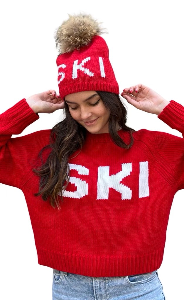 Get ready to SKI in style with this classic raglan acrylic crew with SKI knit on the chest. This carefully crafted chunky sweater is knit from a thick 100% acrylic for easy care and YEARS of wear. Whether you are on the slopes or APRES ski, it’s a cold-weather wardrobe staple!