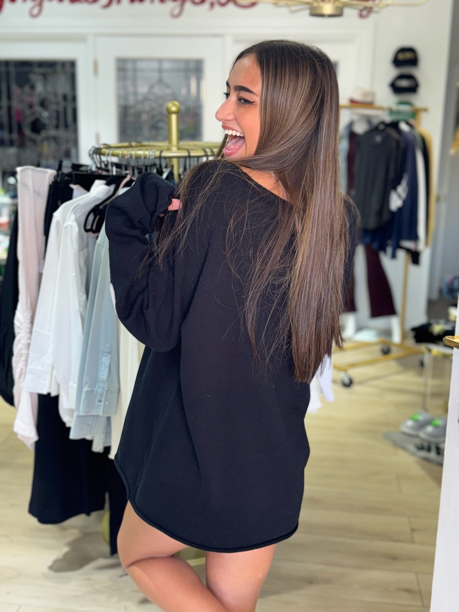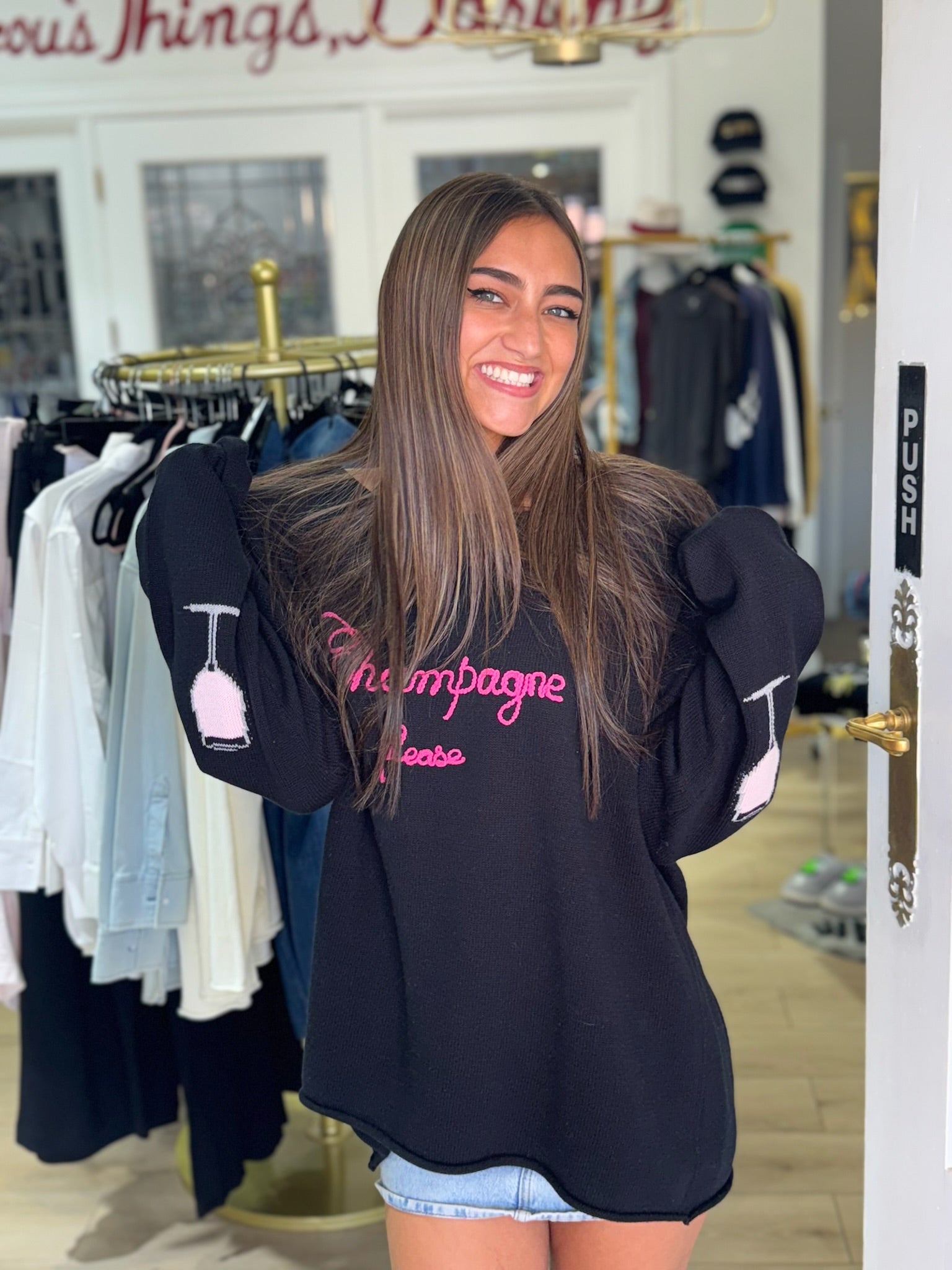 Treat yourself to some bubbly , with this 100% Cotton, Lightweight Boxy Sweater with dropped shoulders and Rolled Hem. Wear your flutes on your sleeves to clink with your besties🥂