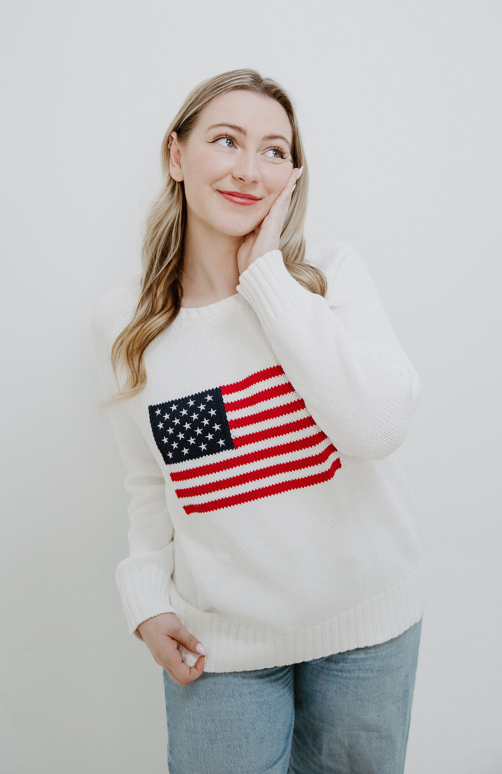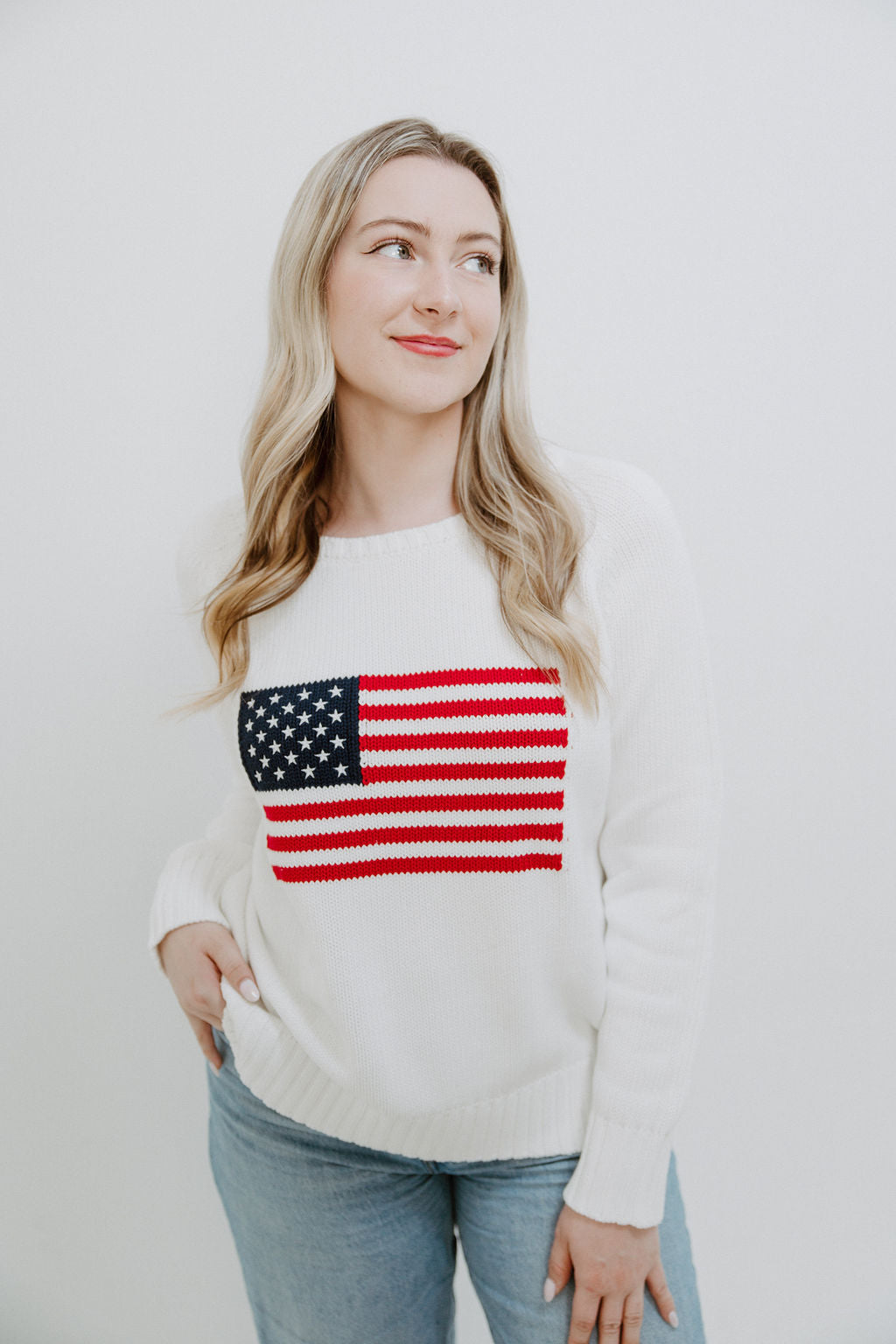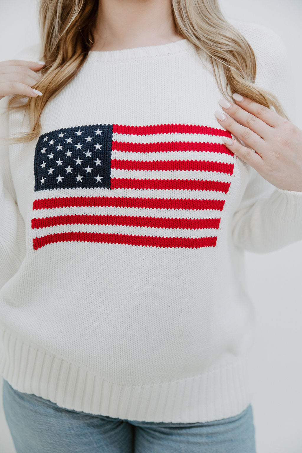 We're feeling extra patriotic in this gorgeous Flag Cotton Sweater. This sweater makes for the perfect throw-on all Summer long with its easy fit, ribbed detailing and of course large American Flag across the front.