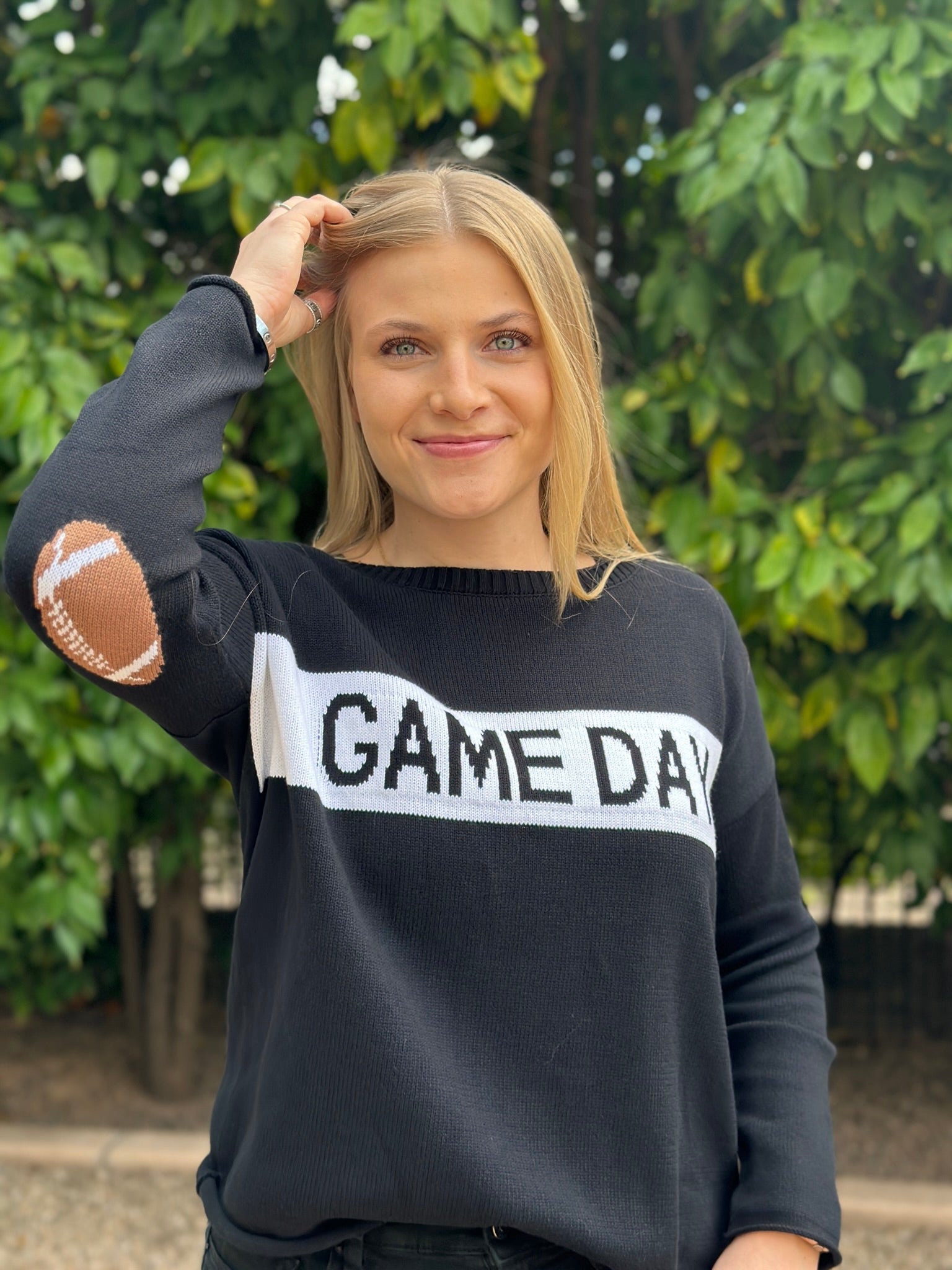 Score touch down with this oversized, boxy sweater with dropped shoulders and rolled hem, complete with rugby stripes on the arms.