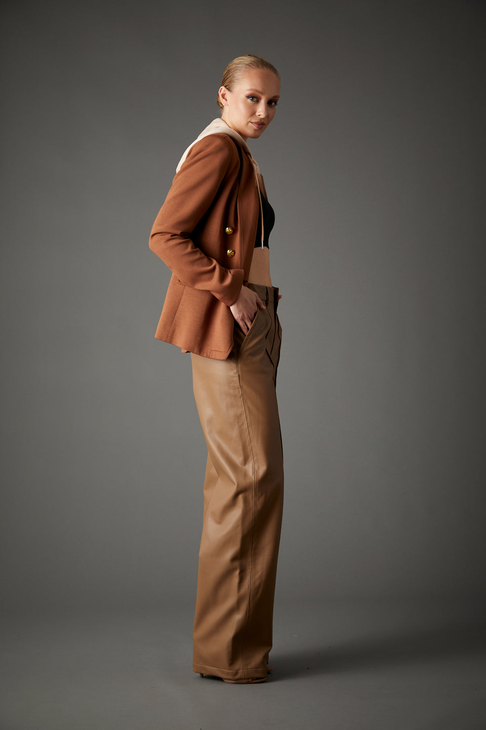 Helen Double Breast Breasted Blazer in Coffee and Tan