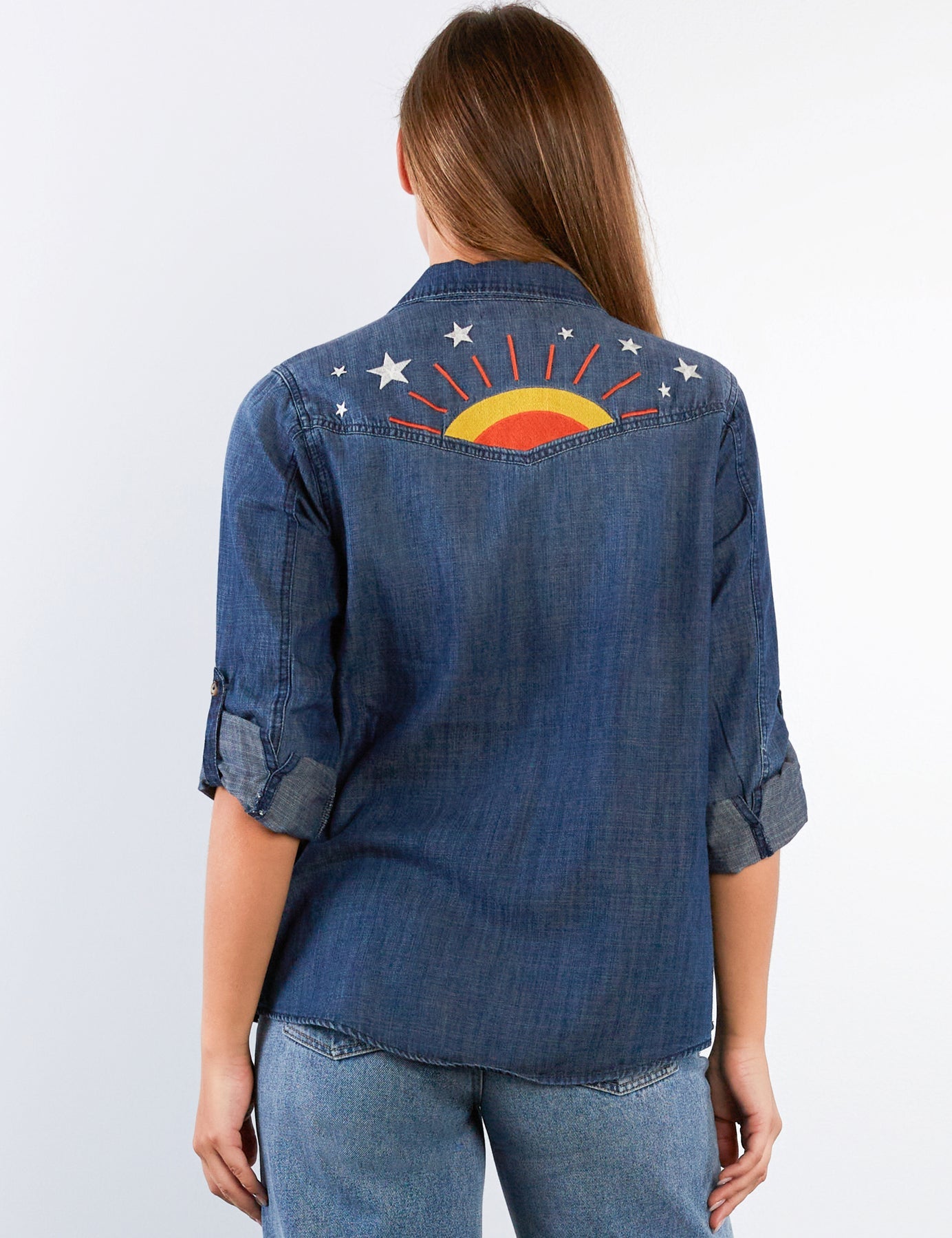From sunrise to sunset, the Hello Sunshine Shirt is ready to glow! Beautiful sun-n-stars embroidery on this super-soft, classic shirt will make you smile every time you wear it.