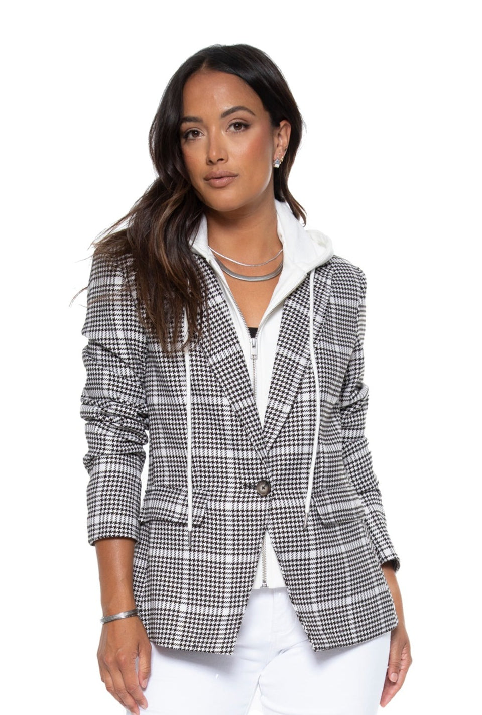 WASH: Houndstooth in black & white (Blazer) & White (Hoodie Insert)
