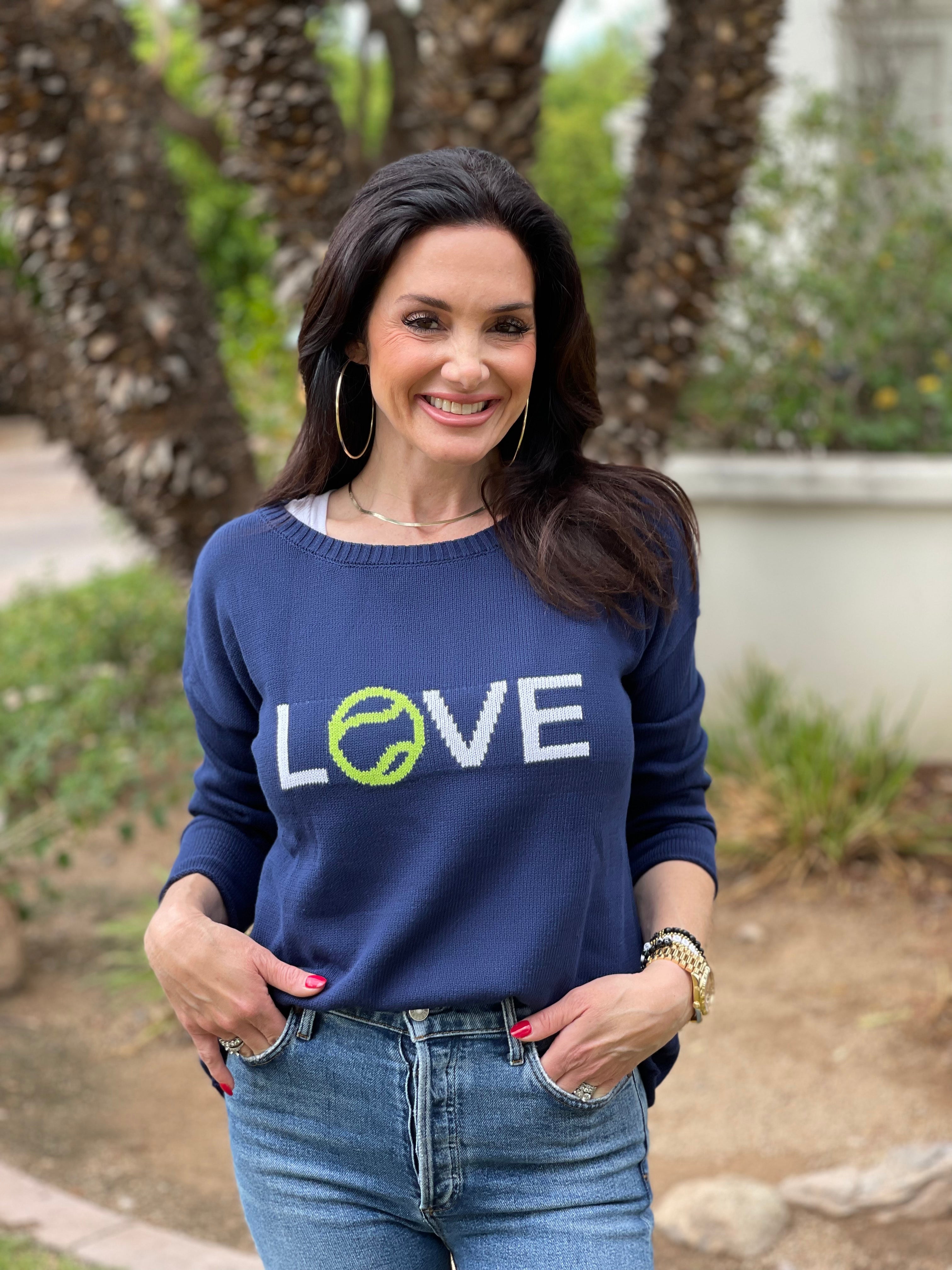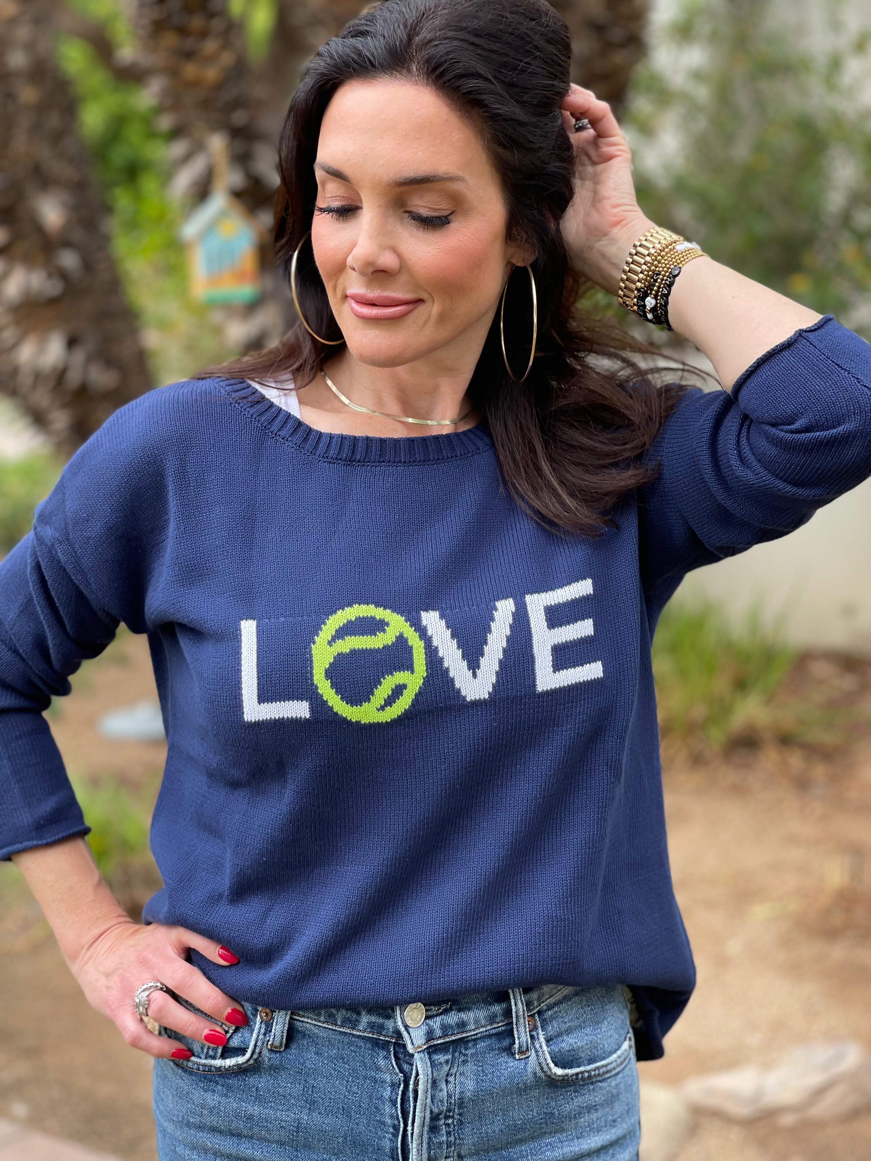 Show some Tennis LOVE with this 100% Cotton, Lightweight Boxy Sweater with dropped shoulders and Rolled Hem.