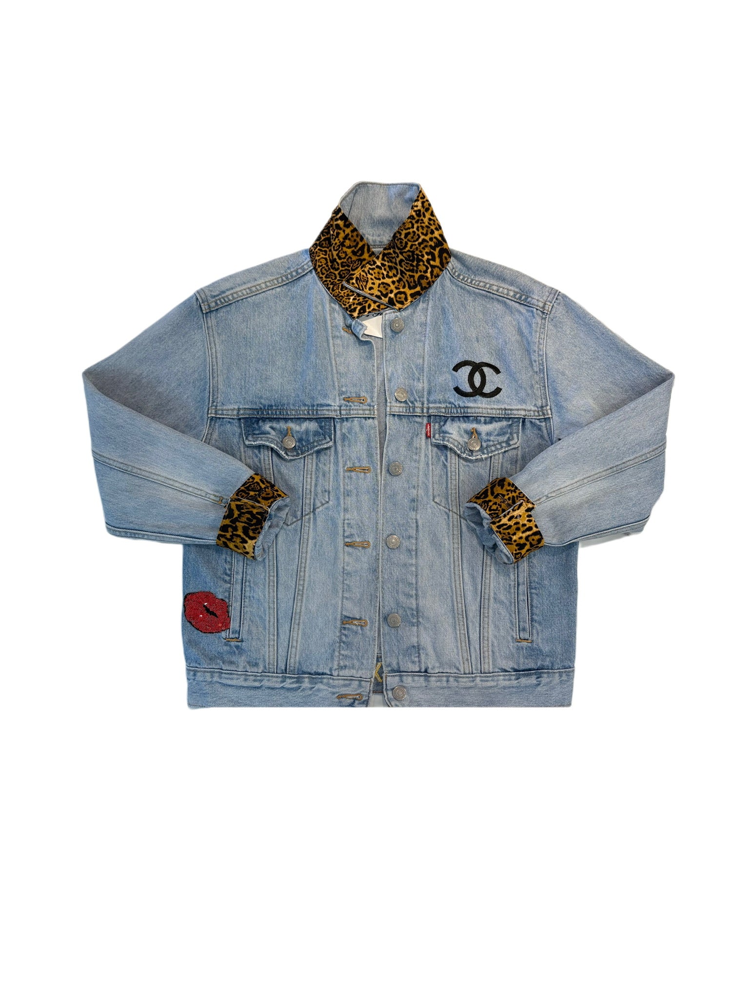 Ready To Wear Jacket for the Chanel-lover. This jacket features a the famous CC Logo with glitter angel wing patches and animal print ribbon.