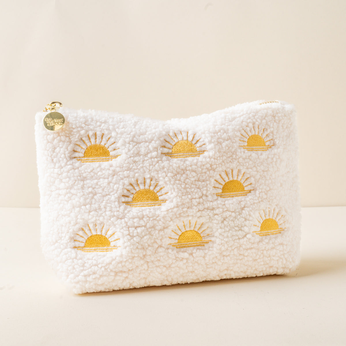 Add a cozy touch to your essentials with our Pool teddy pouch. Crafted from soft sherpa fabric, this pouch features a wipeable lining for easy cleaning, and gold zippers and hardware for a polished look. The interior is lined with a fun printed fabric, making it as stylish on the inside as it is on the outside. A perfect size for keeping your favorite items organized, and can be beautifully paired with our other teddy pouch sizes to create a matching set.