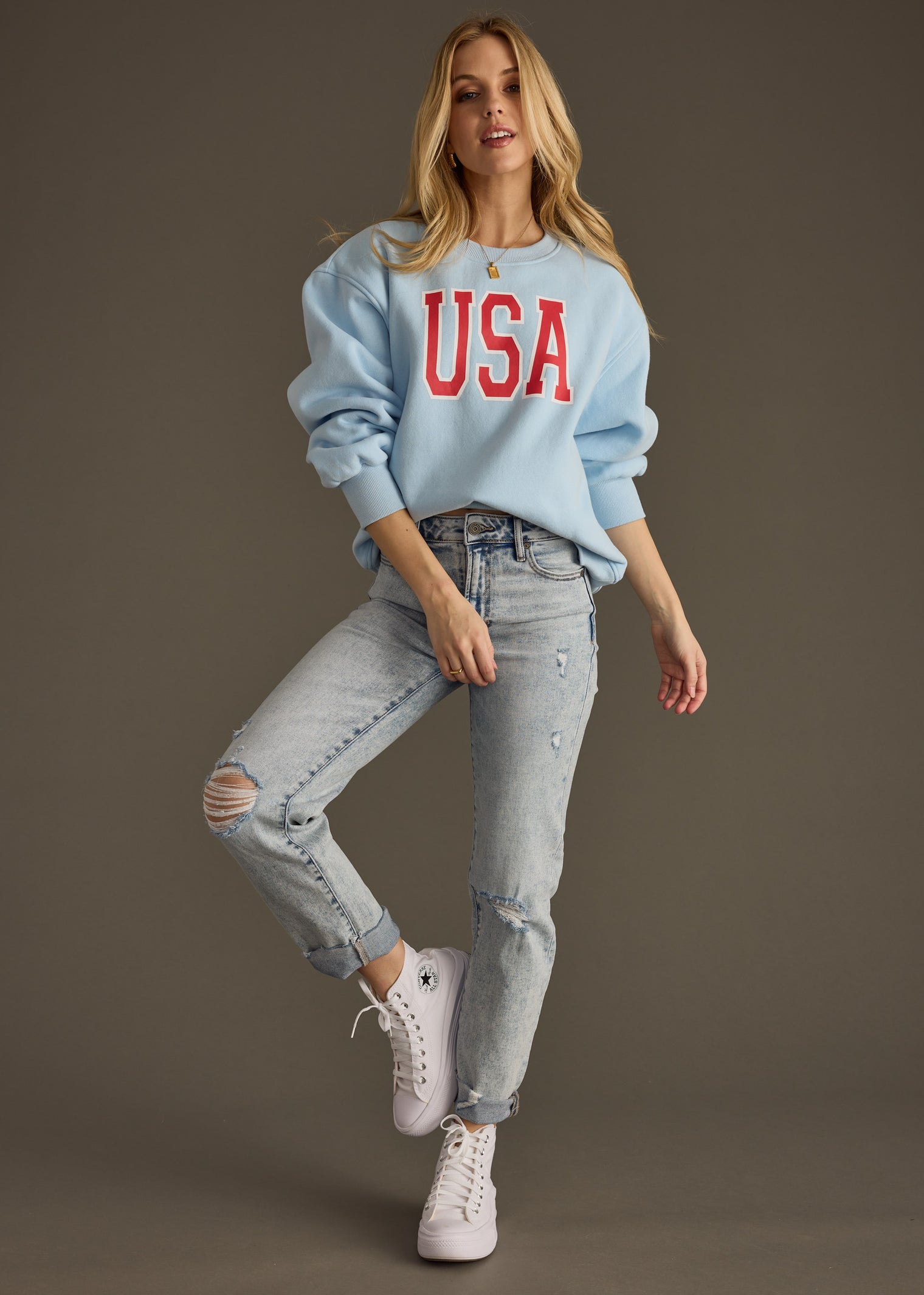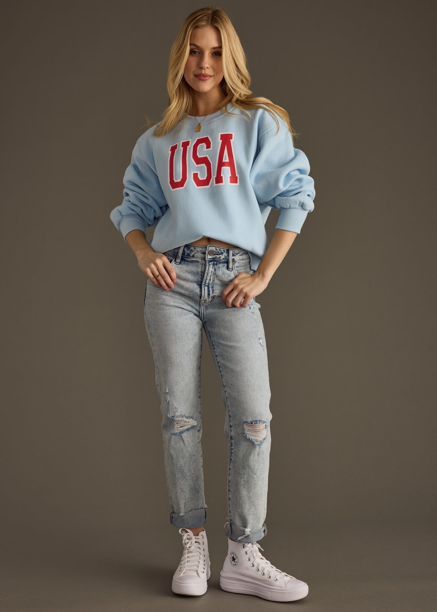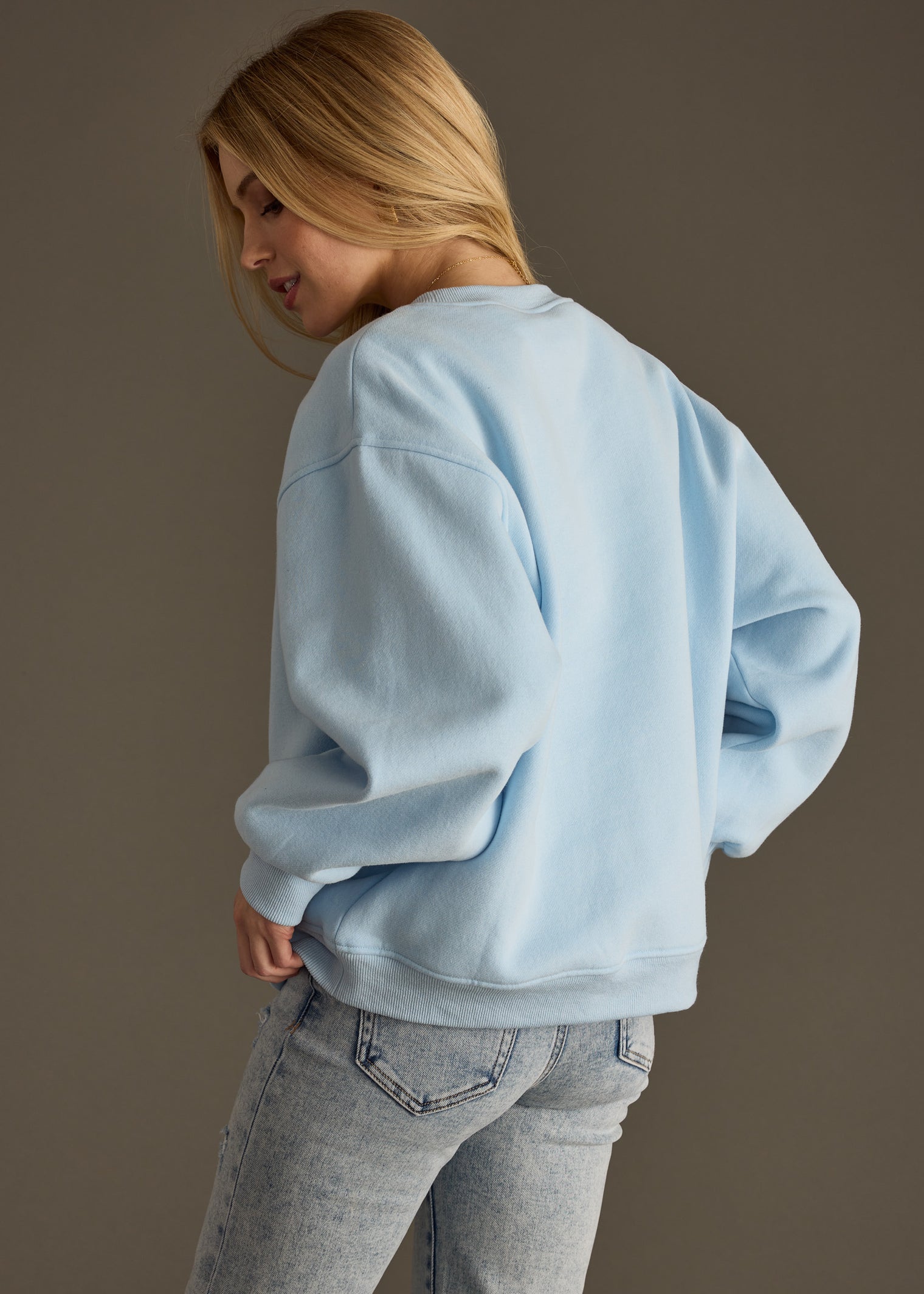 - Light blue oversized sweatshirt