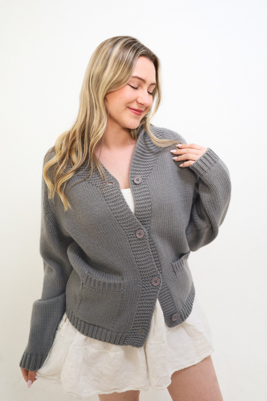 Show yourself some love in this, super soft, cozy, 100% acrylic cardigan with front pockets. From breezy nights, to crisp mornings, the perfect year-round, layering piece! Machine washable.